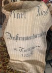 Als mein Nachbar vor Jahren ins Pflegeheim umgezogen war, kam eine Entrümpelungsfirma und kippte die Reste vor sein Haus. Ein knappes Dutzend Getreidesäcke aus traumhaft weichem Leinen seines Vaters von 1935 und Großvaters von 1893 waren dabei, was für ein tolles Material, reines Leinen, natürlich völlig unbehandelt, über Jahrzehnte benutzt und aufbewahrt. Dieser Fund sollte den Grundstein für Veredels Upcycling bilden, Koffer mit Aussteuerwäsche aus meiner Verwandtschaft kamen hinzu, ebenso wie die Ideen zur Umgestaltung der Schätze aus der Vergangenheit.